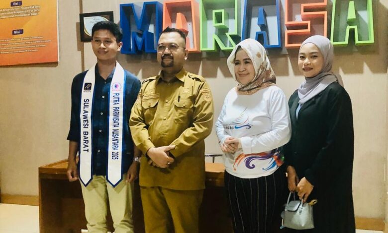 Majene – Kepala Dinas Pariwisata Provinsi Sulawesi Barat, menerima kunjungan peserta Ajang Putra Putri Pariwisata Nusantara (PPPN) 2025 perwakilan Sulbar di ruang kerjanya, Selasa (12/8/2025). Kunjungan ini menjadi ajang silaturahmi sekaligus diskusi strategis untuk memperkuat promosi pariwisata daerah.