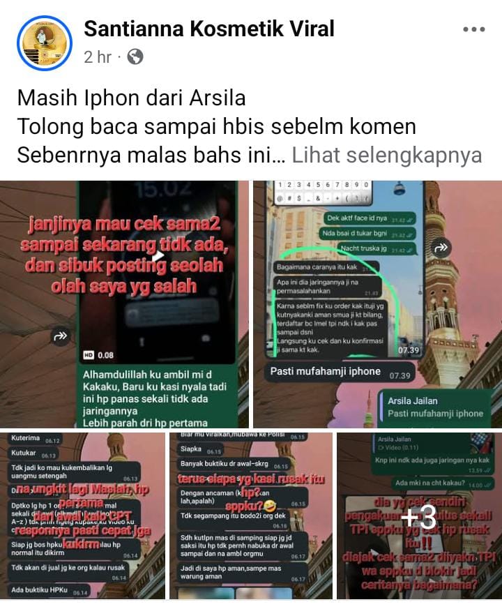 Salah seorang korban, pemilik akun Facebook Santianna Kosmetik Viral, membagikan pengalamannya melalui unggahan yang kini ramai dibagikan warganet. Dalam postingan itu, ia menceritakan telah memesan sebuah iPhone 11 Pro Max sejak April 2025, namun proses pengiriman penuh drama dan tidak pernah tuntas.